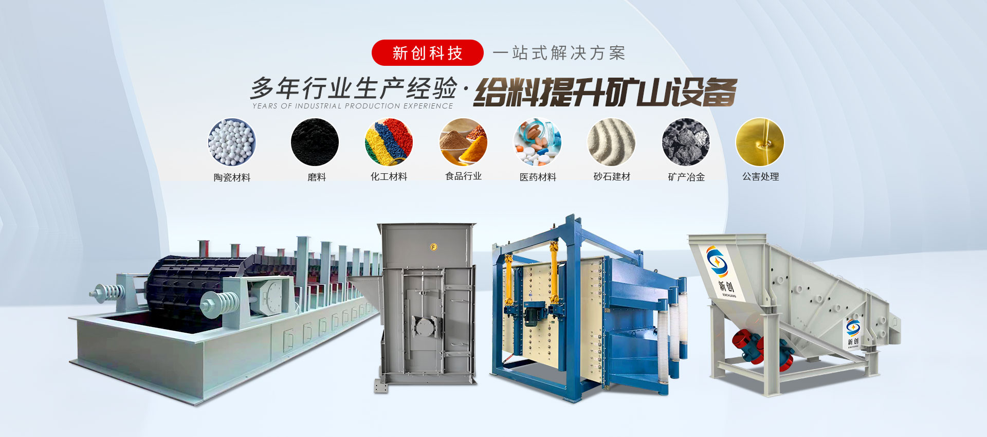 邯鄲市峰峰礦區新創科技有限公司是振動設備、給料設備、振動篩分設備、輸送設備、提升設備、除塵設備等制造廠,玻璃原料輔機生產廠。